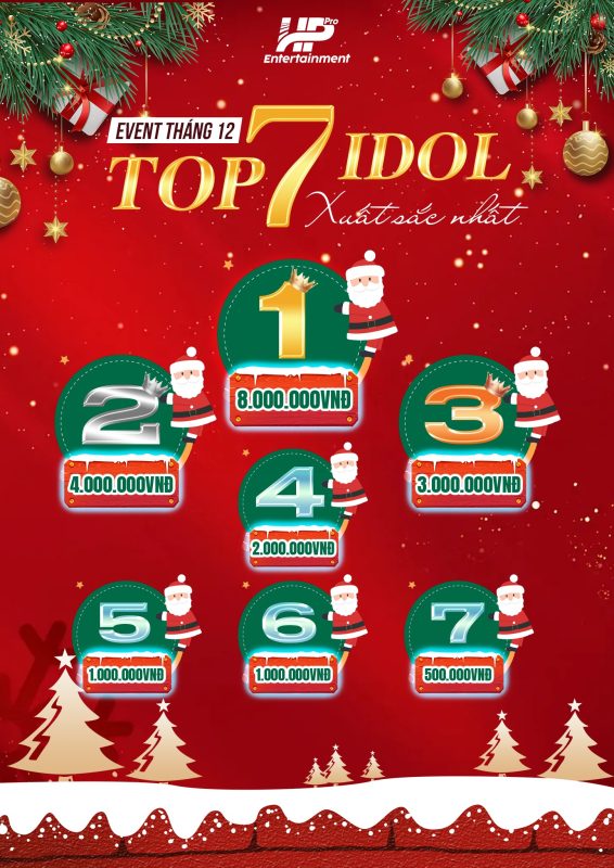 Tháng cuối năm đã đến và cùng với đó là sự bùng nổ của EVENT TOP 7 IDOL XUẤT SẮC NHẤT – phiên bản đặc biệt mùa lễ hội! ✨🎅